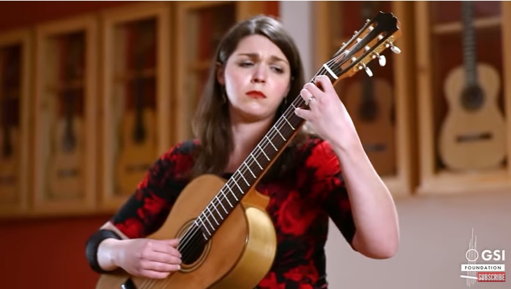 “Jaclyn Jones performing “Romanze” from “Bardenklänge, Op. 13” by Johann Kaspar Mertz on a 2022 Jake Fuller “Purnell” classical guitar made with cedar top and Tulipwood back and sides. Recorded at the Guitar Salon International showroom in Santa Monica, CA.”