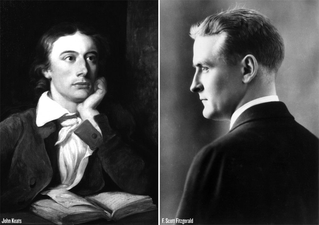 Both Fitzgerald and Keats came from humble origins, had lively and distinguished peers, and were possessed by a genius that wasn’t fully recognized until after their deaths. Romantics to the bone, Fitzgerald and Keats were equally motivated by their human muses, Zelda Sayre and Fanny Brawne, as by their longing for Beauty with a capital B: the ideal, the unattainable, that which is so imaginatively close and yet so physically far away. Wilde also said that “we are all in the gutter, but some of us are looking at the stars.” In their own distinct ways, Fitzgerald and Keats were some of our finest stargazers.