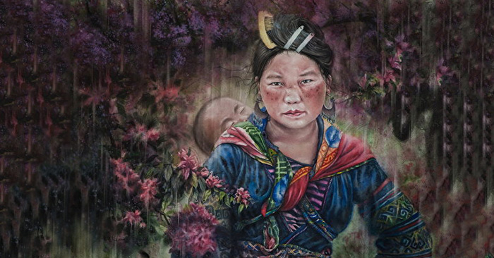 Bức “Người Mẹ H’Mông Đen” – Người mẹ dân tộc H’Mong Đen trẻ tuổi có khí chất với đôi mắt của tràn đầy tình yêu và sự kiên định. Dưới tác động của văn hóa sống hiện đại, người dân tộc H’Mong Đen ở trên dãy núi thuộc Sa Pa, Việt Nam vẫn duy trì lối sống truyền thống của họ và trang phục truyền thống. Trong ngọn núi sâu này, như một thiên đường, có vô số khách du lịch, những người H’Mong Đen từ ngôi làng của mình đi bộ 20 km qua lại đến khu vực đô thị mỗi ngày, để bán hàng hóa cho khách du lịch, ngõ hầu cân bằng giữa cuộc sống hiện đại và truyền thống.
