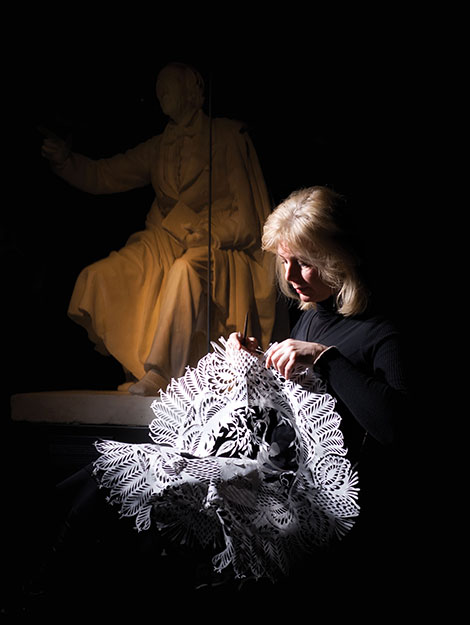 “Lần nào đó cũng là một khoảnh khắc kỳ diệu, vì dù bạn đã hoạch định trong đầu nó sẽ trông như thế nào, nhưng bạn không bao giờ có thể tưởng tượng đầy đủ”. Sau khi mở nó ra, cô sẽ cắt thêm các chi tiết. Cô làm hầu hết điều một cách tùy hứng, không cần phải vẽ thiết kế trước và không bao giờ dùng dao để cắt.